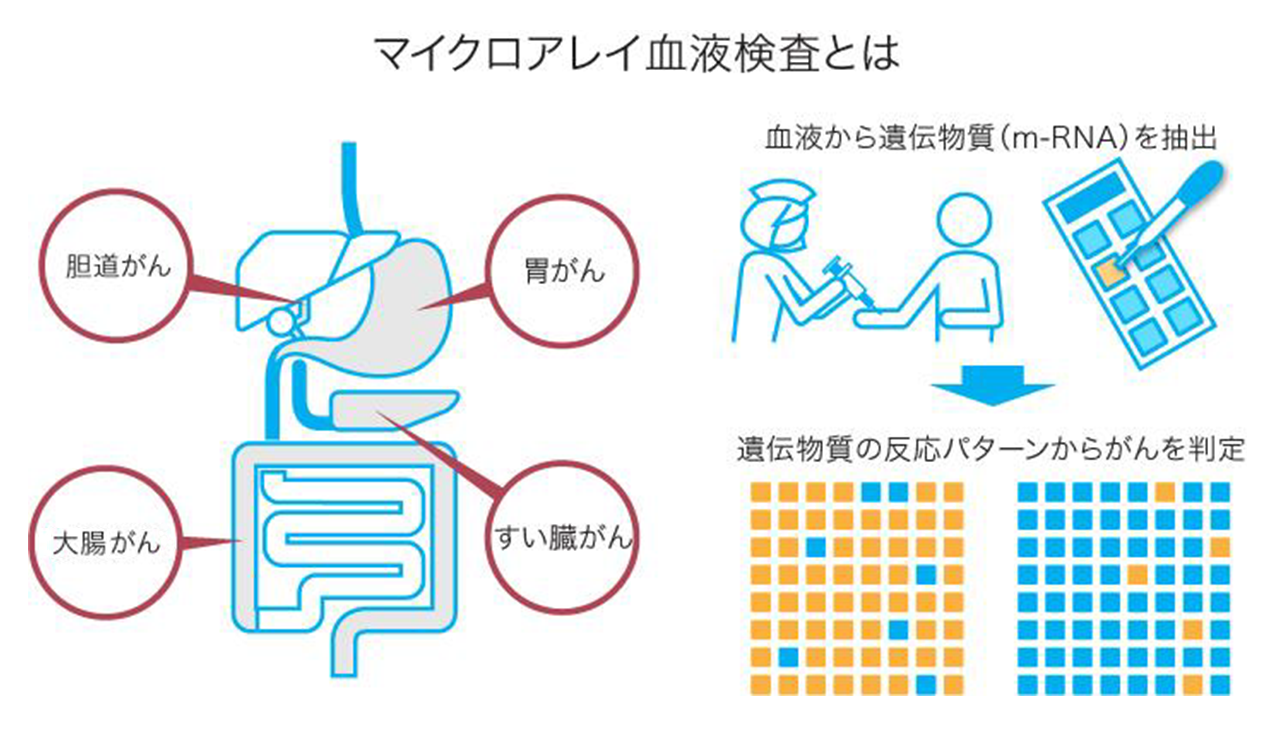 がん発症数の上位(※)占めている消化器がんのリスクを、がんなどの異物に対する体の反応から遺伝子レベルで評価できる最新の技術です。通常、消化器がんは初期段階では自覚症状に乏しく、進行するまで気づかないことが多いとされていますが、本検査は1度の採血で早期を含む胃がん・大腸がん・すい臓がん・胆道がんの検出が可能です。金沢大学大学院医学系研究科の研究成果からは感度・特異度は90%以上と高い精度を示すことが報告されています。